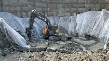 The VFS1 is a post-disaster relief building featuring a ground-floor firehall with a truck garage, firefighter offices, and residential units above. Excavation reached two stories deep, with caissons and cores on sloping bedrock and shoring for adjacent structures. Using Thermal Integrity Profiling (TIP) testing, the team addressed Victoria's complex clay-over-bedrock conditions, enabling the safe, resilient foundation for this critical facility.